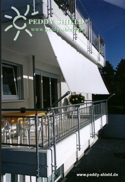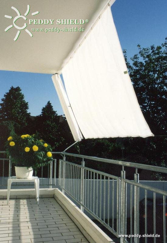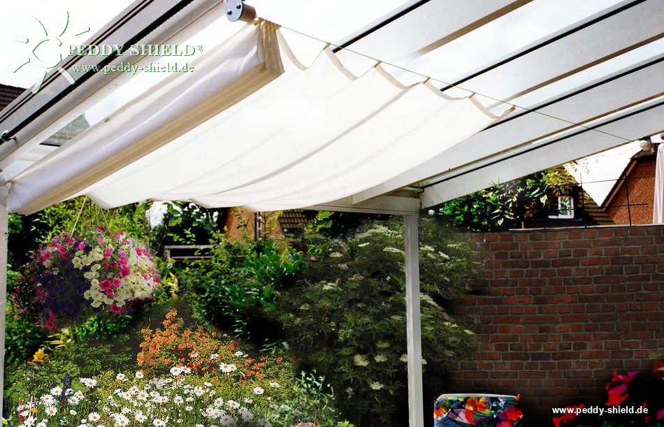 Wind is geen probleem, want u kunt het oppervlak van het zonnezeil eenvoudig verkleinen en het zonnezeil met behulp van optionele stoppers vastzetten.