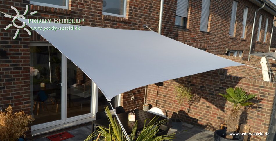Waterafstotend uitgerust, hierdoor dient u het zonnezeil voldoende schuin op te hangen, dit om bij regen waterzakken te voorkomen.