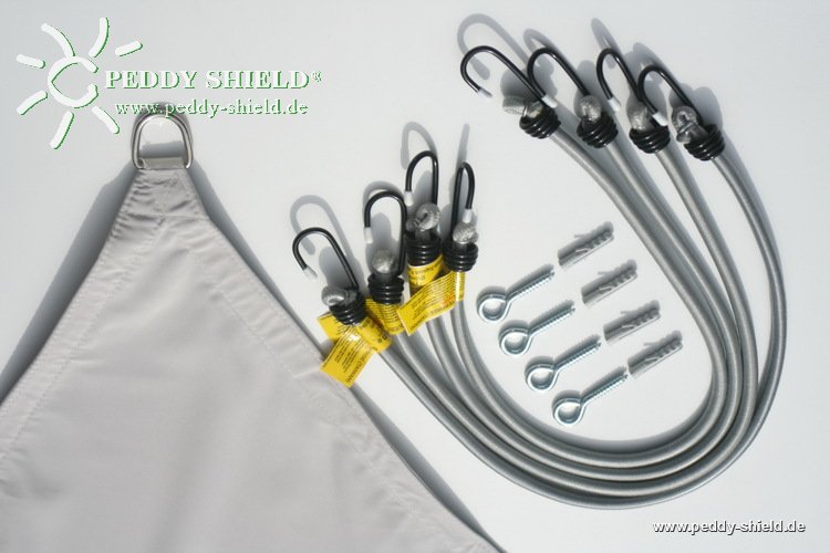 Het vierhoekzonnezeil is incl. elastische spanriemen en bevestigingsmateriaal